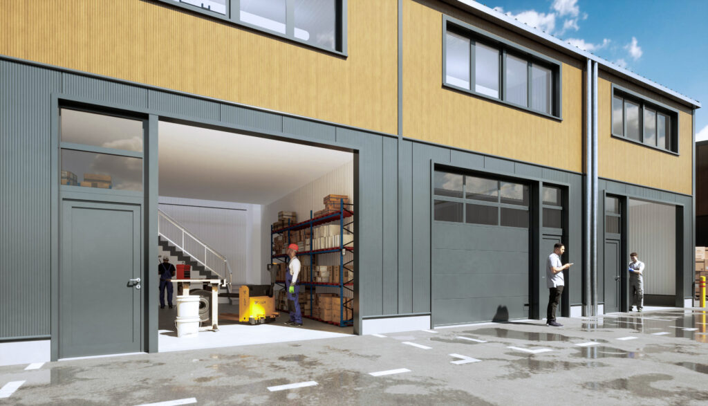Jeder einzelne CUBE verfügt über 126m² auf zwei Ebenen. Das Erdgeschoss ist aufgrund des großen Sektionaltores besonders als Lager- und Produktionsfläche geeignet. Über eine Innentreppe ist das Obergeschoss schnell erreichbar. Aufgrund eines Lichtbandes im Erdgeschoss und beinahe raumbreiten Fenstern im Obergeschoss ist der gesamte CUBE lichtdurchflutet und eignet sich neben Lagerung, auch hervorragend als Büro oder Atelier.